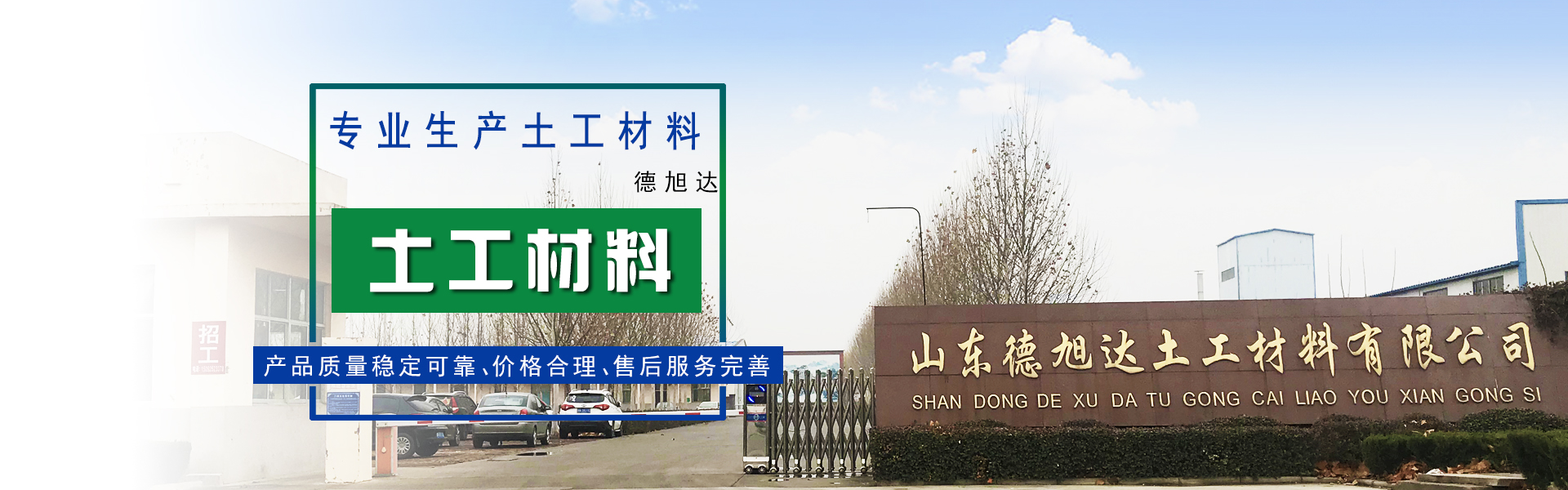 山東德旭達(dá)土工材料有限公司是目前規(guī)模較大,品種較全的土工合成材料專業(yè)生產(chǎn)企業(yè),是全國(guó)土工合成材料生產(chǎn)基地重點(diǎn)企業(yè)之一,注冊(cè)資本為5070萬元,占地面積120畝,現(xiàn)有員工100余人,其中各類專業(yè)技術(shù)人員40多人。 地理位置優(yōu)越,交通十分便捷。山東德旭達(dá)土工材料有限公司位于西漢大文學(xué)家東方朔故里,魯西北著名歷史名城—德州 市陵城經(jīng)濟(jì)開發(fā)區(qū)。京滬高速鐵路依縣而過,京福高速公路、德煙鐵路、京滬鐵...【了解更多】